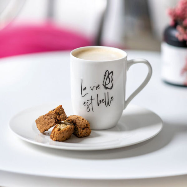 850 денПремиум порцеланската шолја од колекцијата Statement е висококвалитетен и стилски додаток за секојдневна употреба – од кафе наутро до чај попладне или навечер. Прекрасна порака, прекрасен материјал: Црната филигранска буква на шолјата додава елегантен шмек и воедно пренесува позитивна порака. Оваа чаша е идеален подарок за пријателите или семејството кои…