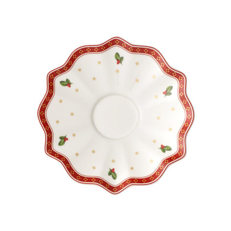 Порцеланска тацна за шолја за кафе/чај, во божиќен дизајн, наменета за шолјата за кафе/чај од истоимената колекција. Се мие и одржува рачно, а безбедна е за употреба во микробранова печка.