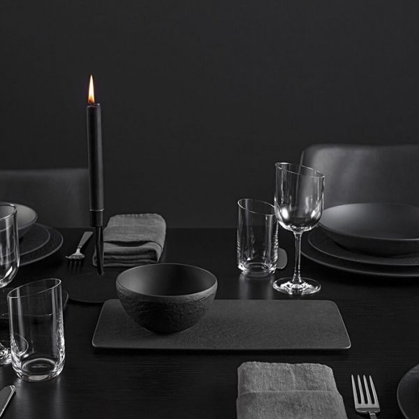 Manufacture Rock е една од најпродаваните колекции на садови од Вилерој и Бох. Кристалните чаши се создадени како додаток на темниот порцелан, така што заедно можат да создадат аранжман на масата, полиран до последниот детаљ. Графитниот дел на чашата и дава модерен карактер, а деликатно нагласените агли се инспирирани од суровоста на природните карпести формации. Чашите ќе ја нагласат бојата на секој пијалок претставен во нив.