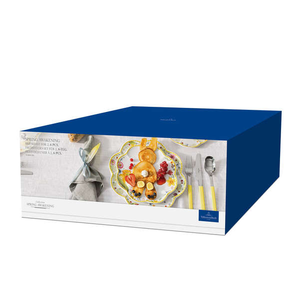 Spring Awakening сет за појадок во свежи жолто-зелени нијанси, изработен од премиум порцелан. Совршен за стилски почеток на денот и создавање пролетна атмосфера на трпезата.